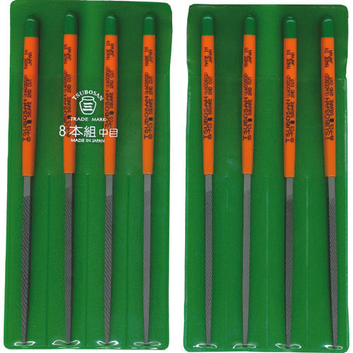 Sharp dressing, excellent durability. Blades are engraved all around.Type:8 Piece Set SecondTotal Length (mm):200Blade Length (mm):100Grain Size: 01 (bastard), 02 (second), 03 (smooth)Carbon Steel Tools (SK-2)5 to 12 pieces set of file set refers to the total length. 5 Pieces Set=215mm 8 Pieces Set=200mm 10 Pieces Set=185mm 12 Pieces Set=170mm