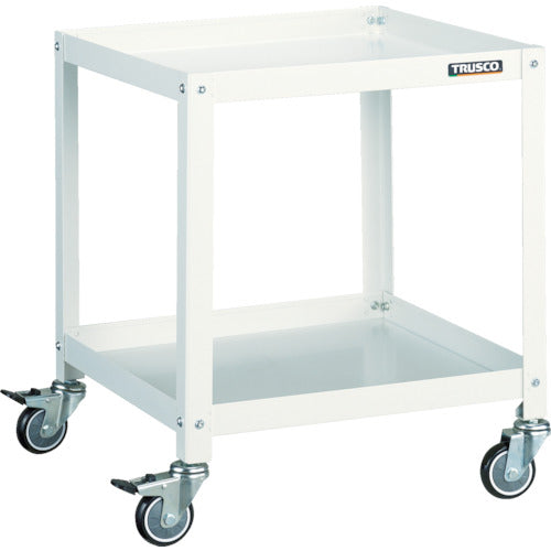 A double lock specification caster which locks the axle with the wheel.Max Load Capacity (kg/piece):180Equal Load Capacity (kg/stage):50Color:WhiteW x D x H (mm):500 x 500 x 600Number of Stages (stage):2Caster: Flexible Type 75mm (2 pieces) Flexible Type (with double stopper) 75mm (2 pieces)Shelf Board: Steel(melamine baked coating)Strut: Steel(baked coating)Caster Bracket: Steel(chrome-plated finishing)Wheel: Urethane