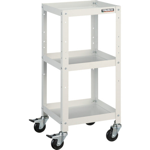 A double lock specification caster which locks the axle with the wheel.Max Load Capacity (kg/piece):150Equal Load Capacity (kg/stage):50Color:WhiteW x D x H (mm):360 x 360 x 810Number of Stages (stage):3Caster: Flexible Type 75mm (2 pieces) Flexible Type (with double stopper) 75mm (2 pieces)Shelf Board: Steel(melamine baked coating)Strut: Steel(baked coating)Caster Bracket: Steel(chrome-plated finishing)Wheel: Rubber