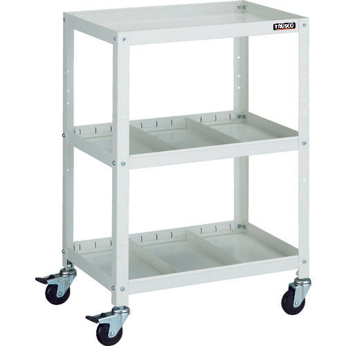 A double lock specification caster which locks the axle with the wheel.Max Load Capacity (kg/piece):150Equal Load Capacity (kg/stage):50Color:WhiteW x D x H (mm):500 x 500 x 810Number of Stages (stage):3Caster: Flexible Type 75mm(2 pieces), Flexible Type(with double stopper)75mm(2 pieces)Vertical Partition x 4Shelf Board: Steel(melamine baked coating)Strut: Steel(baked coating)Caster Bracket: Steel(chrome-plated finishing)Wheel: Rubber