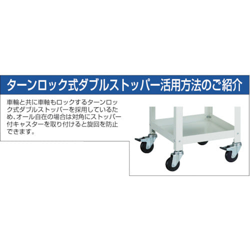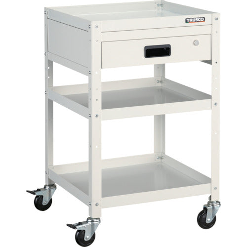 A double lock specification caster which locks the axle with the wheel.Max Load Capacity (kg/piece):150Equal Load Capacity (kg/stage):50Color:WhiteW x D x H (mm):500 x 500 x 810Number of Stages (stage):3Drawer(stage):1Caster: Flexible Type 75mm (2 pieces) Flexible Type (with double stopper) 75mm (2 pieces)Shelf Board: Steel(melamine baked coating)Strut: Steel(baked coating)Caster Bracket: Steel(chrome-plated finishing)Wheel: Rubber