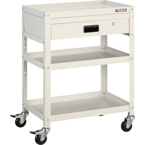 A double lock specification caster which locks the axle with the wheel.Max Load Capacity (kg/piece):150Equal Load Capacity (kg/stage):50Color:WhiteW x D x H (mm):600 x 400 x 810Number of Stages (stage):3Drawer(stage):1Caster: Flexible Type 75mm (2 pieces) Flexible Type (with double stopper) 75mm (2 pieces)Shelf Board: Steel(melamine baked coating)Strut: Steel(baked coating)Caster Bracket: Steel(chrome-plated finishing)Wheel: Rubber