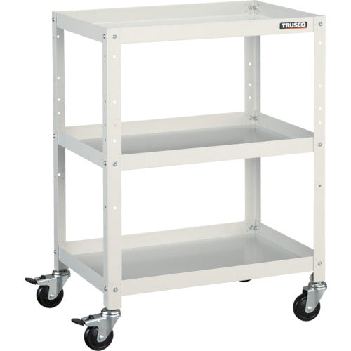 A double lock specification caster which locks the axle with the wheel.Max Load Capacity (kg/piece):150Equal Load Capacity (kg/stage):50Color:WhiteW x D x H (mm):600 x 400 x 810Number of Stages (stage):3Caster: Flexible Type 75mm (2 pieces) Flexible Type (with double stopper) 75mm (2 pieces)Shelf Board: Steel(melamine baked coating)Strut: Steel(baked coating)Caster Bracket: Steel(chrome-plated finishing)Wheel: Rubber