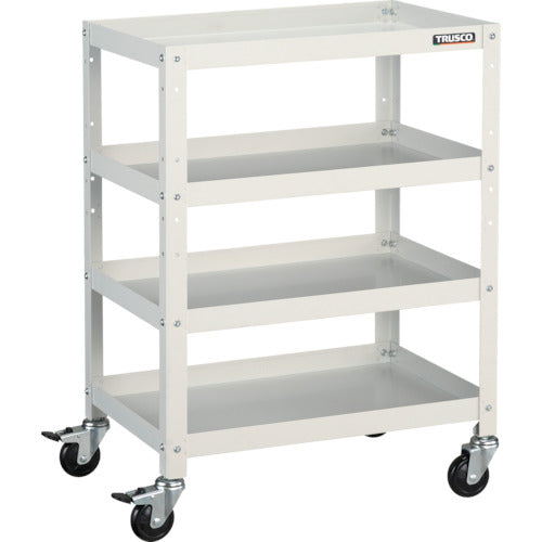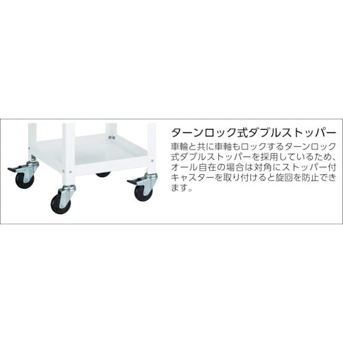 A double lock specification caster which locks the axle with the wheel.Max Load Capacity (kg/piece):150Equal Load Capacity (kg/stage):50Color:WhiteW x D x H (mm):600 x 400 x 810Number of Stages (stage):4Caster: Flexible Type 75mm (2 pieces) Flexible Type (with double stopper) 75mm (2 pieces)Shelf Board: Steel(melamine baked coating)Strut: Steel(baked coating)Caster Bracket: Steel(chrome-plated finishing)Wheel: Rubber