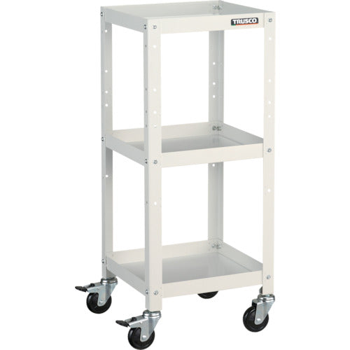 A double lock specification caster which locks the axle with the wheel.Max Load Capacity (kg/piece):150Equal Load Capacity (kg/stage):50Color:WhiteW x D x H (mm):360 x 360 x 880Number of Stages (stage):3Caster: Flexible Type 75mm (2 pieces) Flexible Type (with double stopper) 75mm (2 pieces)Shelf Board: Steel(melamine baked coating)Strut: Steel(baked coating)Caster Bracket: Steel(chrome-plated finishing)Wheel: Rubber