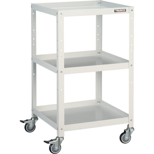 A double lock specification caster which locks the axle with the wheel.Max Load Capacity (kg/piece):180Equal Load Capacity (kg/stage):50Color:WhiteW x D x H (mm):500 x 500 x 880Number of Stages (stage):3Caster: Flexible Type 75mm (2 pieces) Flexible Type (with double stopper) 75mm (2 pieces)Shelf Board: Steel(melamine baked coating)Strut: Steel(baked coating)Caster Bracket: Steel(chrome-plated finishing)Wheel: Urethane