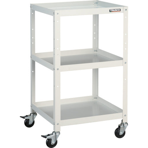 A double lock specification caster which locks the axle with the wheel.Max Load Capacity (kg/piece):150Equal Load Capacity (kg/stage):50Color:WhiteW x D x H (mm):500 x 500 x 880Number of Stages (stage):3Caster: Flexible Type 75mm (2 pieces) Flexible Type (with double stopper) 75mm (2 pieces)Shelf Board: Steel(melamine baked coating)Strut: Steel(baked coating)Caster Bracket: Steel(chrome-plated finishing)Wheel: Rubber