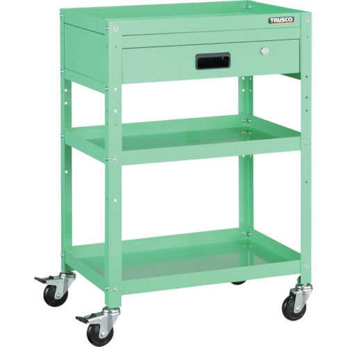 A double lock specification caster which locks the axle with the wheel.Max Load Capacity (kg/piece):150Equal Load Capacity (kg/stage):50Color:Young GreenW x D x H (mm):600 x 400 x 880Number of Stages (stage):3Drawer(stage):1Caster: Flexible Type 75mm (2 pieces) Flexible Type (with double stopper) 75mm (2 pieces)Shelf Board: Steel(melamine baked coating)Strut: Steel(baked coating)Caster Bracket: Steel(chrome-plated finishing)Wheel: Rubber