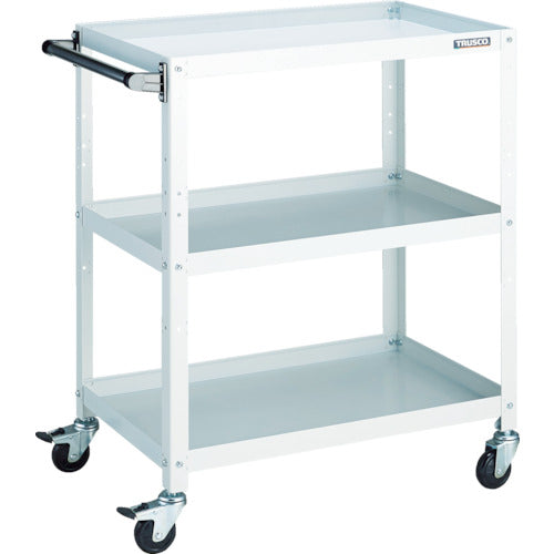 A double lock specification caster which locks the axle with the wheel.Max Load Capacity (kg/piece):150Equal Load Capacity (kg/stage):50Color:WhiteW x D x H (mm):700 x 450 x 880Number of Stages (stage):3Caster: Flexible Type 75mm (2 pieces) Flexible Type (with double stopper) 75mm (2 pieces)Wheel: RubberCaster Bracket: Steel(chrome-plated finishing)
