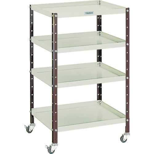 A fully open type tool wagon.Max Load Capacity (kg/piece):60Equal Load Capacity (kg/stage):10Color:Neo GrayW x D x H (mm):482 x 420 x 798Number of Stages (stage):4Caster: Flexible Type 40mm(2 pieces), Flexible Type(with stopper)40mm(2 pieces)Fall Prevention Height: 30mmShelf Board Adjustable Pitch: 50mmMain Body: SteelCaster Bracket: SteelWheel: Rubber