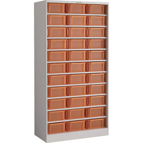 Plastic containers make parts management clearer.W x D x H (mm):900 x 450 x 1790Max Load Capacity (kg/piece):300Container Color:OrangeAccessories:Shelf board x 10Body color: Neo grayMain Body: Steel