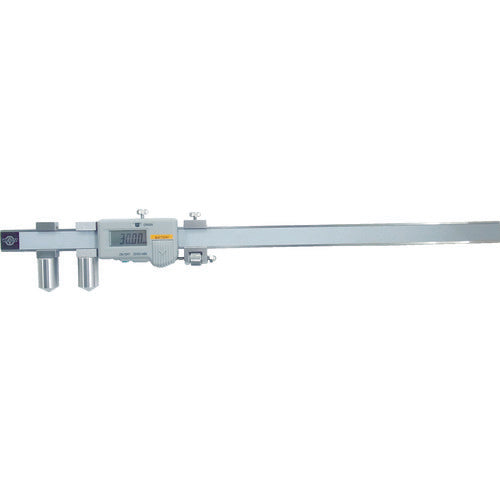 Optimum for measurement of pitch that a sheet metal is punched with press.Pitch of punched round holes can be measured as it is on the surface plate.Since the angle of probe tip is 120, the probe tip does not interfere with the surface plate.Optimum for measurement of pitch that thickness of a sheet metal is 3.2mm or less.For pitch measurement at drilling machine processing on site.Manufacturer Code:171131Measurement Range (mm):15 to 200Instrument Error (mm):?}0.05Jaw Dimension (mm):29.3Minimum Display (mm):0.01Applicable Hole Diameter (mm):3 to 14Depth Bar:NonePower supply: Button type silver oxide battery(SR44) x 1(accessory)