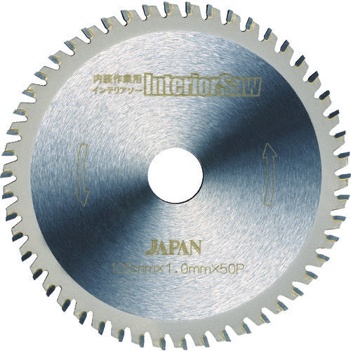 Light cutting feeling due to a thin blade design.For kitchen panels, it is compatible with melamine decorated non-combustion boards and ceramic boards.General wooden materials(also cuts nails).Optimal for interior work with such as plaster boards, particle boards, aluminum materials, and thin iron sheets.Outer Diameter x Blade Thickness x Hole Diameter (mm):125 x 1.0 x 20.0Number of Blades:50Max Working Rotation Speed (rpm):10000Base Metal: Tool SteelTip: Tungsten Carbide