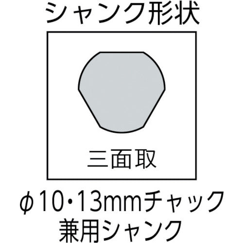Adopted a 3-angle cutting edge so chips do not scatter even with rough use.Punching on curved surface from thick steel plates to thick-walled metal pipes is possible.With a blade designed to reduce friction, lighter and faster drilling and longer life than conventional items(flat blade)are achieved.Step center drill is adopted to reduce the impact when the center drill penetrates.A ?g10mm/13mm chuck combination shank that does not limit the drill chuck diameter is used.Cutting Diameter (mm):21Throat Height (mm):25Shank Diameter (mm):10/13Blade Thickness (mm):2.8Blade Part: Carbide TipCenter drill: High-speed steel(HSS)
