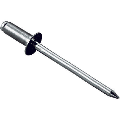 Convenient when keeping the surface flat.In addition to metal to metal fastening, plastic to plastic fastening, fastening of heterogeneous base material (metal and plastics etc) are also possible.Caulking Board Thickness (mm):12.7 to 15.9Rivet Length (mm):21.3Flange Diameter (mm):9.6Rivet Diameter (mm):4.8Pilot Hole Diameter (mm):4.9 to 5.0Shear Load (N):2200Tensile Load (N):3250Packaged in a boxRivet body(flange): Aluminum(A5154)Mandrel(shaft): Steel(carbon steel)