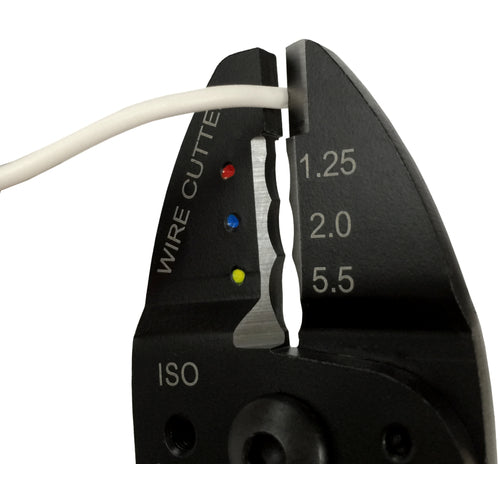Crimping of insulation terminals/bare crimp terminals, stripping of insulated wires, and cutting of cables can be done only with this tool.Cutting of machine screw or bolts is also possible.Outstanding sharpness with the polished-finishing blade part.The unique double-molded is adopted for a grip, and it reduces burden at work.For wiring of machines, automobiles, or electronic tools, crimping works of various crimp terminals, or cutting of small bolts.For Insulating Terminal:1.25, 2, 5.5Crimp Terminal ([[MM2]]) For bare terminal:1.25, 2, 5.5Total Length (mm):240