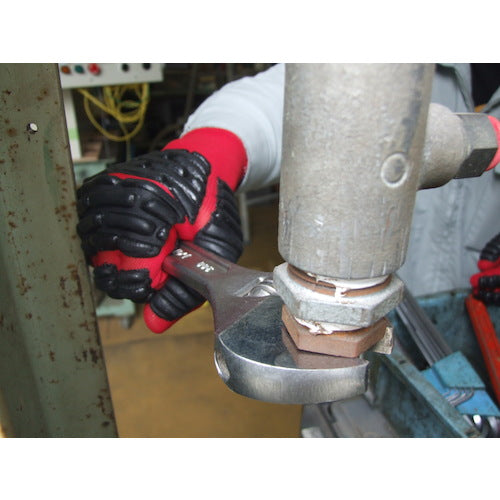 They mitigate impact on the back of the hand due to stuck accidents.Integrated type with the impact absorption material and anti-slip gloves.Color:Black/redSize:M13 Gauge KnittingFiber part: NylonSlip prevention: Natural rubber, synthetic rubber