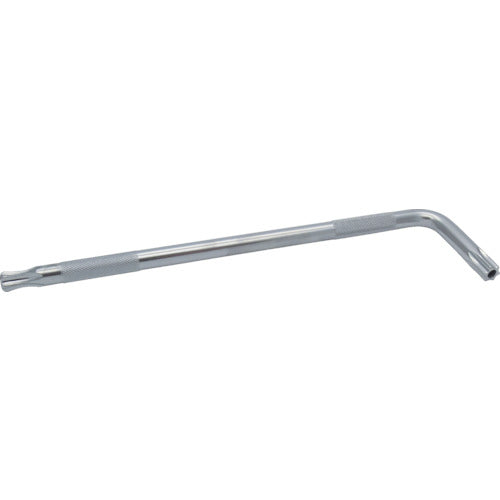 A wrench with double-end holes corresponding to a tamper-proof screw.Blade Edge:T30Length Excl. Head (mm):29Total Length (mm):123Wrench: Special Alloy Steel, SNCM+V Special (hard chrome plating)