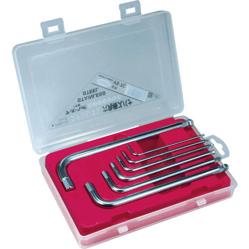 Stainless steel material with high hardness of HRC55 to 57 that is specially quenched.It has excellent corrosion resistance and abrasion resistance. Ideal for fields of ship, food, medicine, fishery, chemical, farming machinery, marine sports, etc.The handle is a round rod so that it fits in the hand.Set Contents (mm):2.5, 3, 4, 5, 6, 8, 10Set Contents (piece):7Stainless Steel (Equivalent to SUS440A)