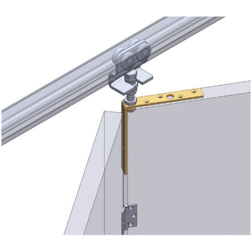 Bracket to mount a folding type suspension wheel on a wooden door.Applicable Rail:No. 23European standard EN1527 compliant productSteel (electrolytic plating treatment)