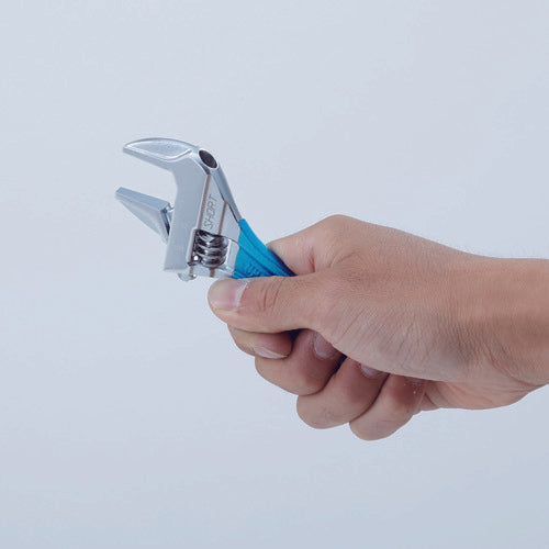 Short type LOBSTER hybrid adjustable angle wrench.Light, thin, wide open wide skeleton grip.Also fit into your pocket, it is the palm size.Optimum for work in a complicated narrow space.With a scale.Color:BlueTotal Length (mm):140Max Opening (mm):30Do not use for electricity flowing. There is no insulation function in the grip.