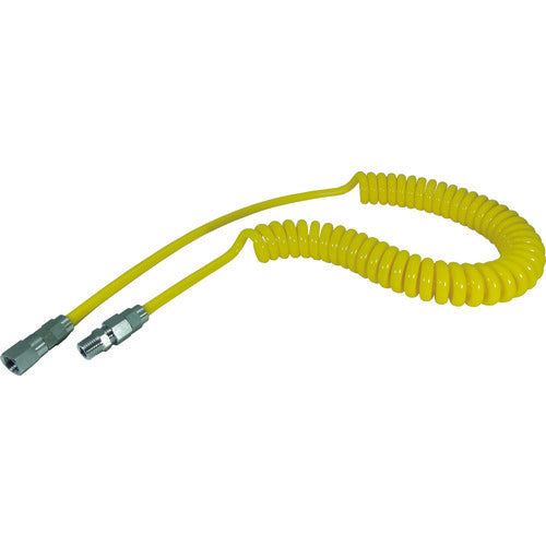 The coil diameter is 30% smaller than the conventional TPS, and difficult to entangle even during multiple usage.Easy to pull out horizontally.Excellent in flexibility.Metal fittings are the standard equipment on both ends.Coil Diameter (mm):30Color:YellowOperating Range (m):2.45Total Length (mm):810Coil Length (mm):410Working Fluid: AirFluid Temperature: -5 to 60CWorking Pressure: 0.6MPaConnection Partner: Hose FittingHose Inner Diameter x Outer Diameter: 5 x 8mmMain Body: PolyurethaneCoupling: Brass
