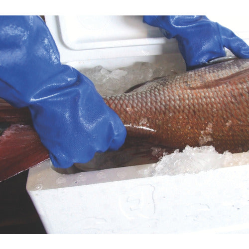 Nitrile gloves with special blending that are hard to get hardened at low temperature.Color:BlueSize:LThickness: 2mmWith Back ClothNitrile rubber(cold resistant NBR)Back: Cotton, polyester