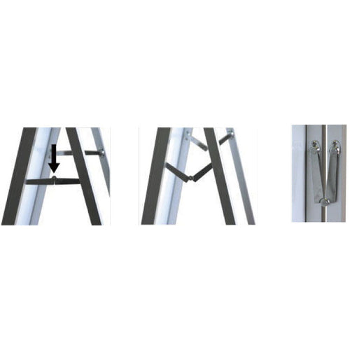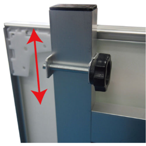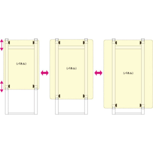 Aluminum New Easel is light and durable, not like a wooden type.Stand for lightweight panels.It is an integrated holder and can be easily set just by moving upper or lower to adjust.Outer Dimension (mm) W x D x H:430 x 480 x 1180Finished GoodsFrame: Aluminum extruded material/alumite finishHolder: Aluminum