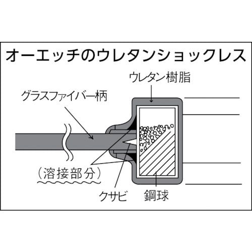 Lasts several tens of times longer than ordinary resin hammer since the urethane resin is integrally molded onto the head of the hammer.Usability is good and strike force is strong because of its shockless structure.Due to the firm fixation of the head and the handle, the head is not deflected during hammering, so the strike force is very good.Designation:4 PoundHead Diameter (mm):70Head Length (mm):160Total Length (mm):550Head: Urethane resinHandle: Fiberglass