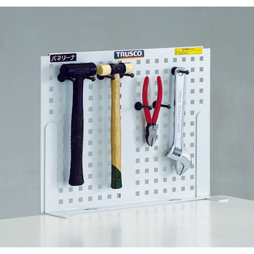 Optimum for tool management alongside the wall and management conditions of tools, etc. can be grasped at a glance.Classification of toolsW x D x H (mm):410 x 91 x 443Max Load Capacity (kg/piece):10Punching Board: 485 x 890mmColor: White(panel)SteelPolyethyleneHook L 4 pieces
