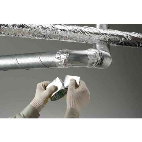 Aluminum tape which can be cut easily and straightly without waving of edge parts even if cutting by hand.Uses aluminum material which is excellent in water resistance and also has a clean finish.Can perfectly fit even on uneven surfaces and curved faces and it can be used outdoors.Sealing of crevices, and waterproof and repair of gutters, galvanized iron roof, corrugated board, etc.Repairing air-conditioning ducts.Color:SilverW x L (mm x m):50 x 10Thickness (mm):0.1Viscosity: 5.48N/10mmTensile Strength: 25.6N/10mmBase material: Soft aluminum foil, polypropyleneAdhesive: Acrylics