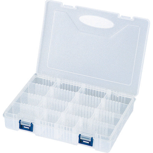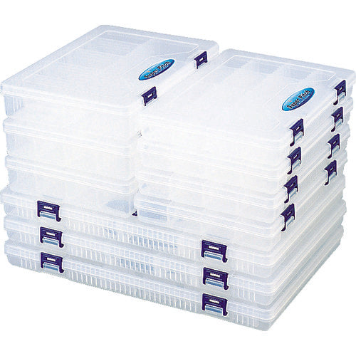 It can be freely separated with 5.5mm pitch.With the 4-side R based, which makes it easier to take out items.Component size, and it is easy to use.Storage box for small items with the professional specification.Color:ClearOuter Dimension (mm) W x D x H:201 x 149 x 39Effective Inner Dimension (mm) W x D x H:190 x 116 x 34With 12 partition panelsPolypropylene (PP)