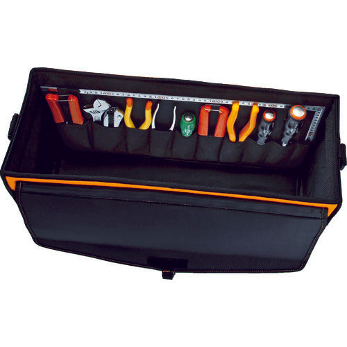 Stylish, well-designed tool bag.This almighty tool bag is the best size and easy to use.Has convenient cover.Color:OrangeOuter Dimension (mm) W x D x H:560 x 205 x 325With inner pocket x 13With outer pocket x 5With top coverWith Shoulder StrapPolyester