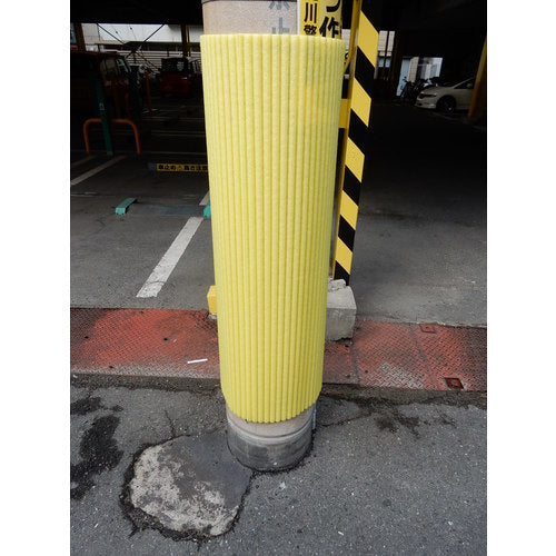 Shock absorbing material that is suitable for a cylinder shape or complicated shapes.As it is made of polyethylene resin, its weight is light and it has good usability.Can be easily cut with a cutter, etc.Color:YellowW x L (mm x m):900 x 0.9Thickness (mm):9Ribbed shape.Double-sided tape is not included.Polyethylene Foam