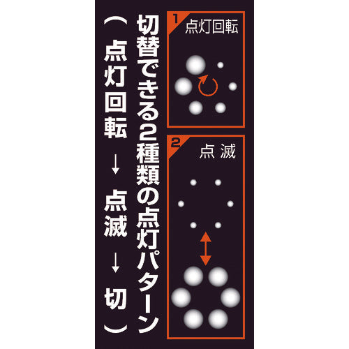 Visibility improves due to diffusion type original LED.360 degrees can be illuminated over a wide range.Mini type of solar panel specification.Auto lights at night.Built-in storage battery type.For working lamp. For security light.LED Bulb:Blue x 6W x H (mm):82 x 153High luminosity light emitting diodeRainproof structurePower Supply: Nickel-Metal-Hydride BatteryContinuous lighting time: About 90 hoursLighting Pattern (switching): Mode 1-Blinking, Mode 2-RotatingMain body upper part: PolycarbonateMain Body Lower Part: Polyethylene (PE)Even when storing, please recharge it at least every 3 months.If storing it without recharging for a long time, it may not be able to be recharged.Bracket(TR-BRA)is not necessary if attaching to the TRUSCO TCC-4Cseries or TSC-4C series.