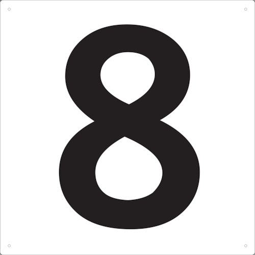 Indoor and outdoor use is possibleIt can also be used as a base line indicator plate.It is convenient for number management.Display Contents:Number 8 WhiteMounting Specs:4 HolesL x W (mm):420 x 420Mounting Method: Screw Lock (screw sold separately)Thickness: 1mmPolyvinyl chloride (PVC)