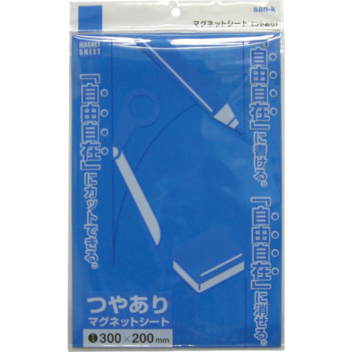 A glossy sheet.It can be erased by whiteboard marker.A convenient sheet that can be cut with scissors.Color:BlueW x L x Thickness (mm):200 x 300 x 0.8Rubber Magnet