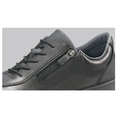 Adoption of SX high-performance resin which is resistant to hydrolysis realizes an excellent durability.Large contact area, high stability, multi-directional slip resistance.Equips a zip fastener with lock function inside, easy to put on/off.Designed formally, matches a business suit.Dimension (cm):23.5Foot Width Size:EEEJIS T 8101 Leather S Type E, F PassedPressure Resistant Load: 10?}0.1kNColor: BlackUpper: full grain cowhideToecap: Wide ACM resinShoe sole: SX high functional resin + 2-layer SX rubber(SX 3 layer bottom F sole)