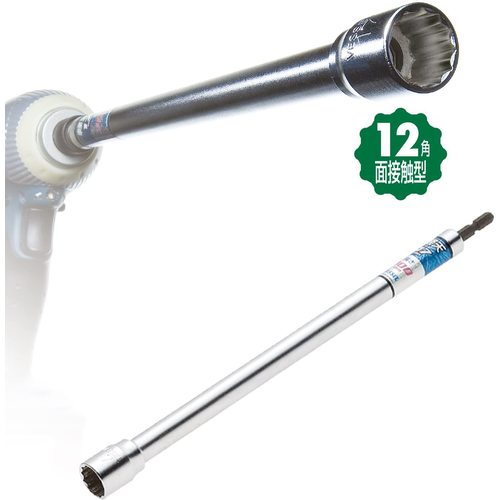 Suitable for drop ceiling work, piping/duct level adjustment, and disassembly.Has Dodecagon shape that is easy to insert into a nut.Shaft press fitting type which is strong against backlash and bending.Opposite Side Dimension (mm):17Shaft Dimension (mm):6.35Total Length (mm):300Depth of section holding the bolt (mm):255Socket Outer Diameter (mm):23Chrome Vanadium Steel (Cr-V)
