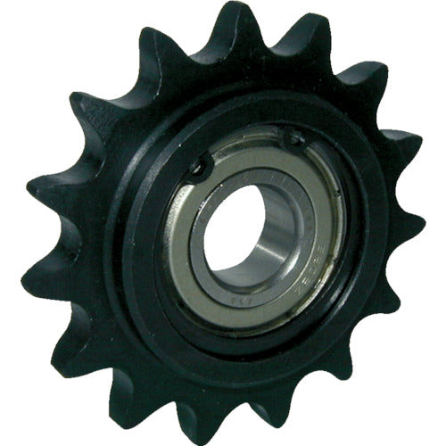 Idler sprocket holds appropriate tension during power transmission of roller chain. Excellent in durability, and can obtain smooth and quiet rotation.The tips of the teeth are hardened, having excellent durability.For adjustment of chain elongation by combining idler, pin and tightener.Chain No.:40Number of teeth:13Outer Diameter (mm):59Reference diameter (mm):53.07Inner Ring Diameter (mm):12Boss Diameter (mm):38Total width (mm):14Compatible Idler Shaft:IDP6001Sprocket: Carbon steel for mechanical structuresHeat Treatment: Tooth tip induction quenchingSurface Treatment: Black Dye