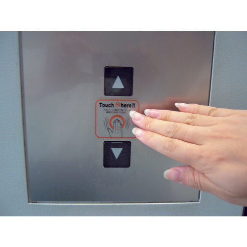 Attachable to any metal parts such as cars, ordinary homes, including doors of offices, etc., and removes static electricity accumulated in the body by just touching it.A transparent raw materials, will not impair the design of the part to be pasted.With a easily recognized sign.A place that feels the electrostatic shock in the metal, plated parts.W x H (mm):50 x 45Thickness (mm):1.5Surface Resistivity: 10 x 10[[UE9]] to [[UE10]]?With Double-Sided TapeSpecial Antistatic Resin (PVC base)