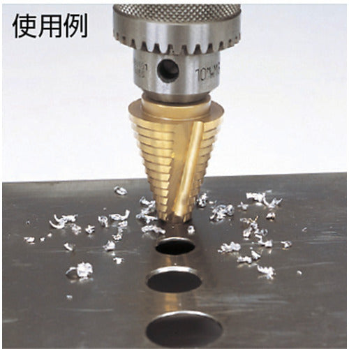 Titanium coating with excellent heat resistance and has a long life.Since it comes with leading edge thinning, biting is light and there is no point misalignment.Work Material: Iron Plate, Copper Plate (up to 2mm), Aluminum Plate, Wood, Resin (up to 3 to 4mm), Stainless Steel Plate (up to 1mm).Step Width (mm):5Number of Stages (stage):5Shank Diameter (mm):6.35Drilling Dimension (?3mm):5, 7, 9, 11, 13Surface Treatment: Titanium CoatingCobalt High Speed SteelCutting Oil