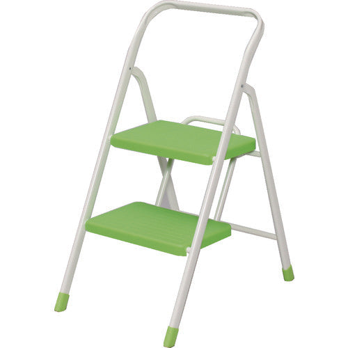 When not in use, it can stored compactly by folding.With the wide design with stability.Since the handle part of the pipe is placed toward the back side, you can sit on it.With leg caps that are unlikely to slip and damage the floor.Max Working Weight (kg):100Color:Light GreenTop Board Height (m):0.45Total Length when in Stored (m):0.905Top Board Dimension (mm):340 x 220Number of Steps:2Rung surface width: 220mmFinished GoodsFrame: SteelStep: Polypropylene(PP)