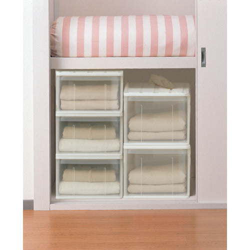 Plastic storage case convenient for closet storage.