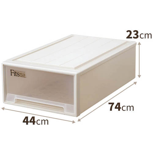 Best suited for organizing working clothes and equipment.Transparent drawer offers a clear view of the contents.Fitted with a front frame strong in stacking.Capacity (L):43Outer Dimension (mm) W x D x H:440 x 740 x 230Effective Inner Dimension (mm) W x D x H:387 x 694 x 180Color: Cappuccino(main body), clear(drawer)Main Body: Polypropylene (PP)Front frame: Styrene resin