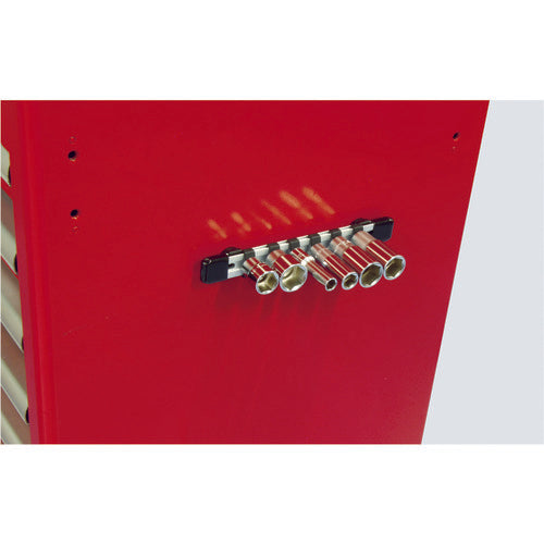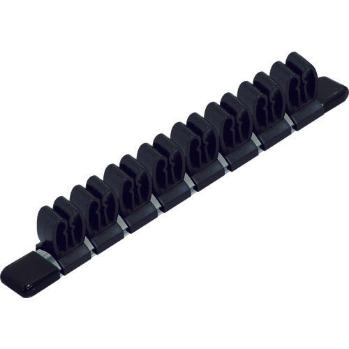 Aluminum rail tool holder that can properly organize screwdrivers, hexagonal wrenches, etc.Pinches the screwdriver shaft with a clip and retains.Equipped with threaded hole to enable wall mount.For organizing screwdrivers, hexagonal wrenches, etc.Length (mm):300Number of socket hold(pieces):8