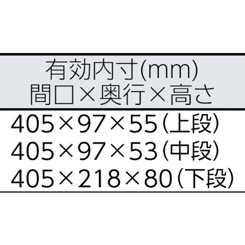 V-shape 3-stage type double-open case with the flat top.Color:RedOuter Dimension (mm) W x D x H:433 x 220 x 240Cylinder Lock (sold separately):InstallableDouble-open case typeMain Body: Steel