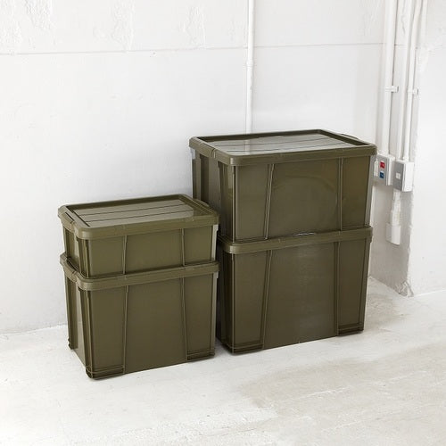 The lid with a lock keeps the contents inside even when the box falls.A lid with convenient grooves for bands and string is attached.Capacity (L):66Color:ODOuter Dimension (mm) W x D x H:635 x 440 x 325Effective Inner Dimension (mm) W x D x H:541 x 371 x 310Color: Olive Drag (OD)Polypropylene (PP)