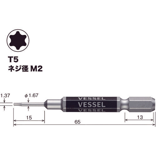 It is processed with the international standard dimension that can fit the specific screw hole shape of TORX[[RD]].TORX[[RD]] bit manufactured based on the certified license.Color printing is applied on all of hexagonal surfaces, and it does not have a blurred part like painted products and has sharp edges.High fitting property was realized due to elaborate processing of blade edge.Color:BlackBlade Edge:T5Total Length (mm):65Shank Diameter: 6.35mmCompatible with 18V impact.