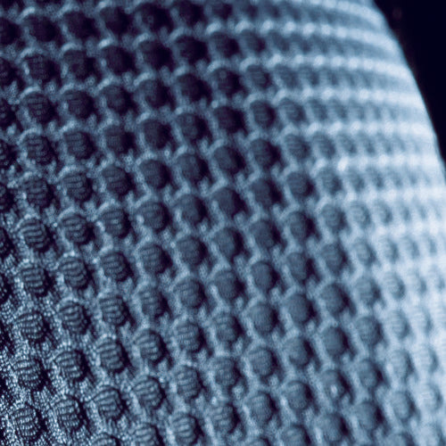 Mesh with special crater structure quickly diffuses sweat and reduces stickiness.